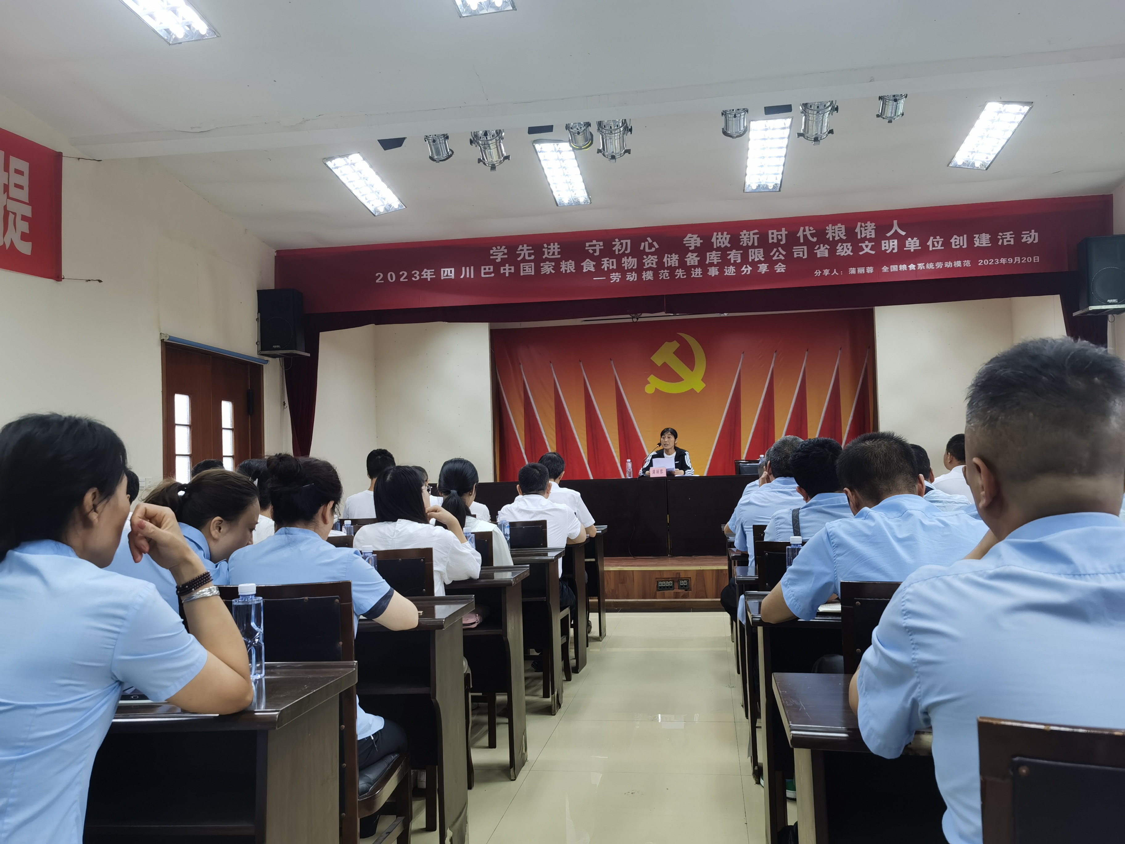 9月20日,四川巴中國家糧食和物資儲備庫有限公司召開省級文明單位創(chuàng)建活動勞模事跡分享會,黨的二十大代表、全國糧食系統(tǒng)勞動模范蒲麗蓉蒞臨授課分享。公司全體黨員干部職工參加。